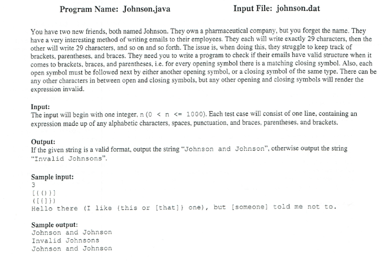 System.out.println(ok ? "Johnson and Johnson" : "Invalid Johnsons");