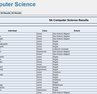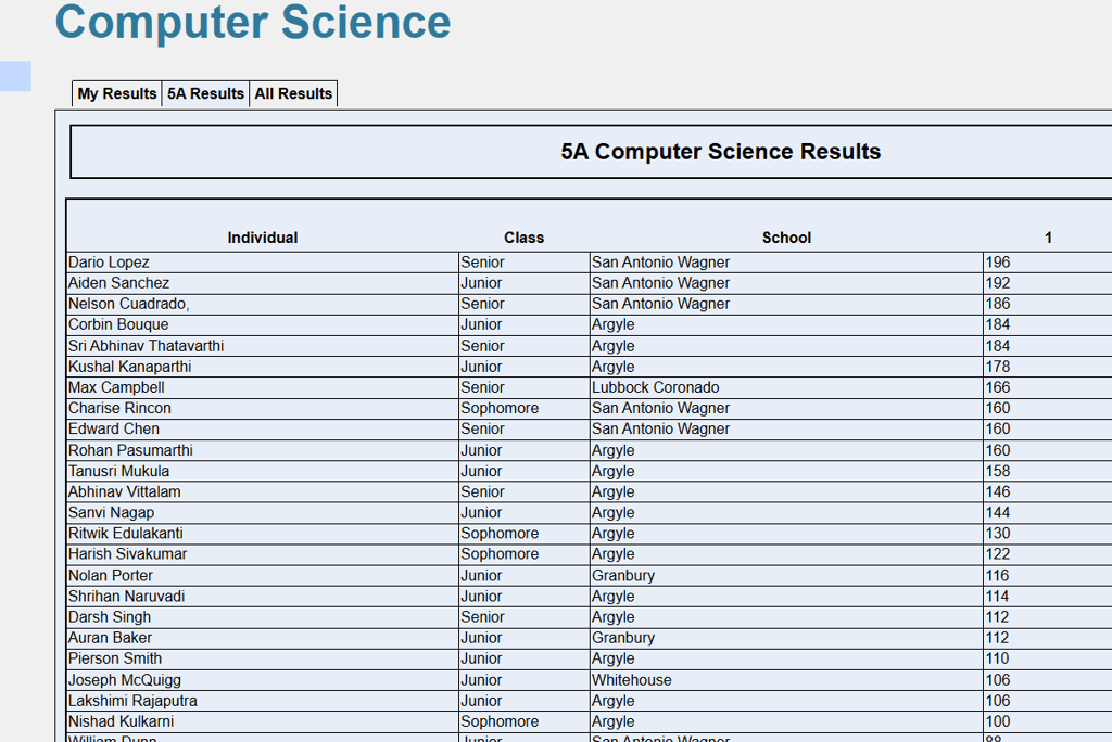 14th Place: Individual 5A: 160 Points, Aiden Sanchez, Nelson Cuadrado, Rudraksh Tyagi